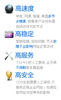 CDN云主机是深圳简四网络科技有限公司最新推出的支持CDN加速的主机产品,主要支持云计算、云存储、云加速、云建站和云管理等功能。 CDN云主机优势说明 高速度:自动在电信、网通、移动、美国、香港等地机房建立镜像缓存服务器,根据访问客户来源,自动访问距离客户最快速服务器,镜像节点与数据中心之间采用BGP高速线路传输,不论客户端是什么网络,均可以全网高速访问。 高稳定:分布式集群架构,避免单点故障,在线率99.999% 。CDN镜像节点智能容错功能,自动切换到备用节点,即使某个或者多个节点死机或机房被封,也毫不影响! 高服务:CDN主机需要人工审核,只接受正规企业网站,杜绝垃圾网站对您带来的影响; 专用服务器,不与普通网站放在一起。专业团队,优先人工服务。个人用户请选择我司其他产品。 高安全:所有机房均采用正规电信机房,所有数据均支持在线备份,即使原硬盘损坏,也可以比较容易找回网站数据。 CDN云主机与传统虚拟主机功能对比 传统的虚拟主机都是单台服务器,一旦机器硬件损坏、IP被封、机房网络故障等,都将导致网站不能访问,严重的情况数据还无法及时取回,即使想换一家服务商也因为没有数据而无能为力。同时传统虚拟主机还存在跨网访问慢的问题,网通用户访问电信服务器速度慢等等... |